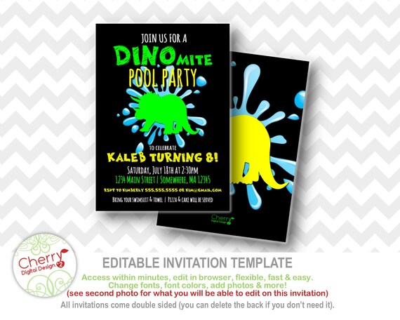 Dinosaur Pool Birthday Party Invitation Printable Editable Etsy