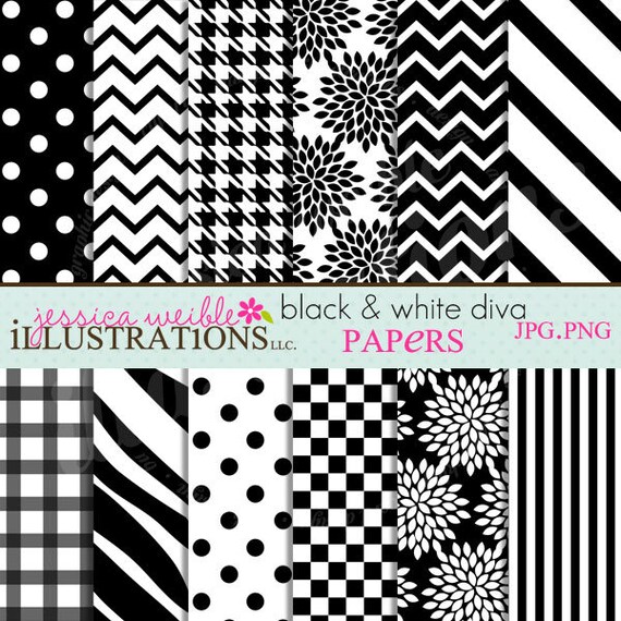 Black White Diva Cute Digital Papers Backgrounds For Etsy