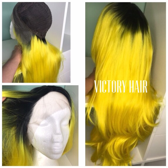 Yellow With Black Root Mix Swiss Lace Front Wig Human Hair Etsy